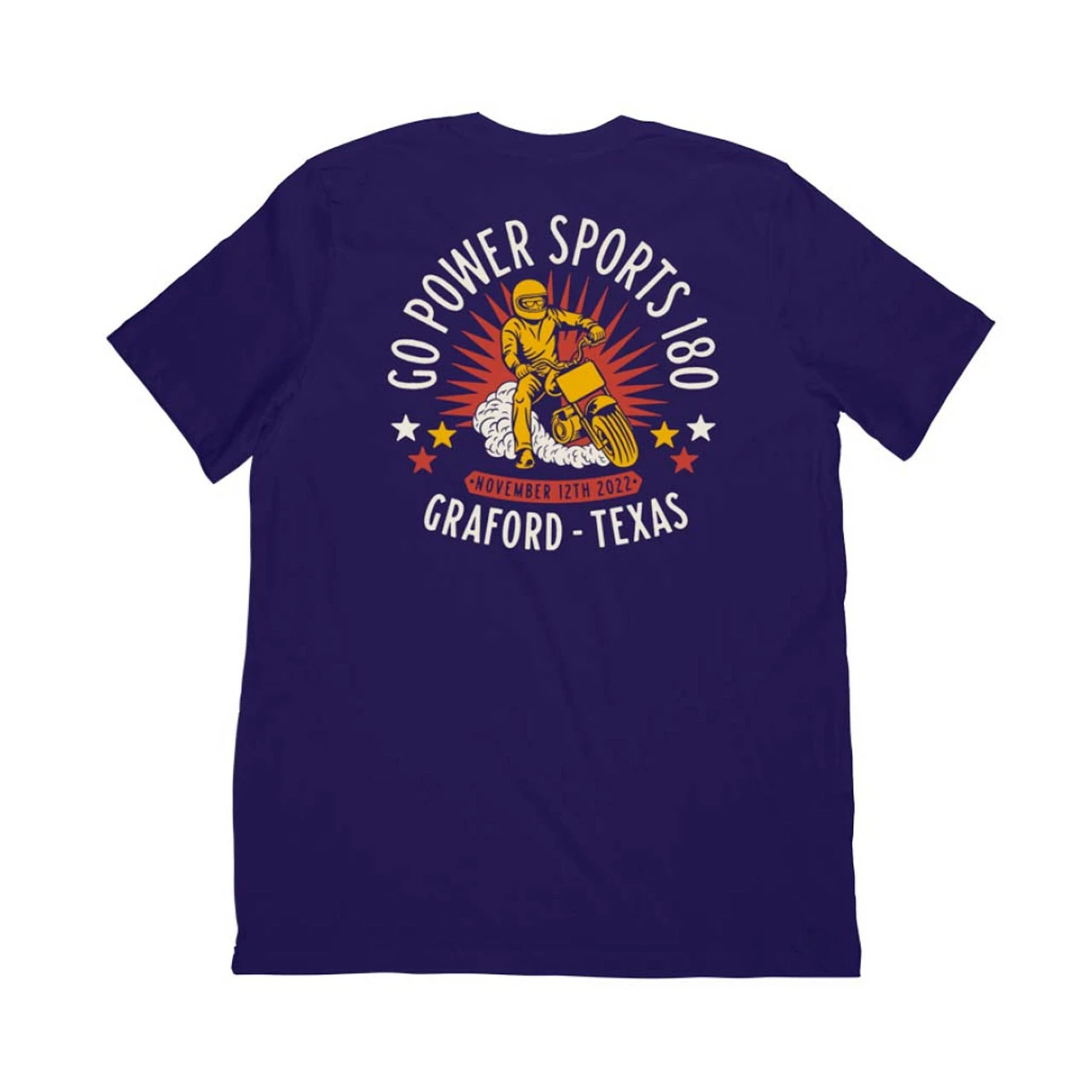 The Official GoPowerSports180 Race Day Shirt for 2022. Printed on the popular Bella Canvas, Team Navy shirt. May shrink after washing.