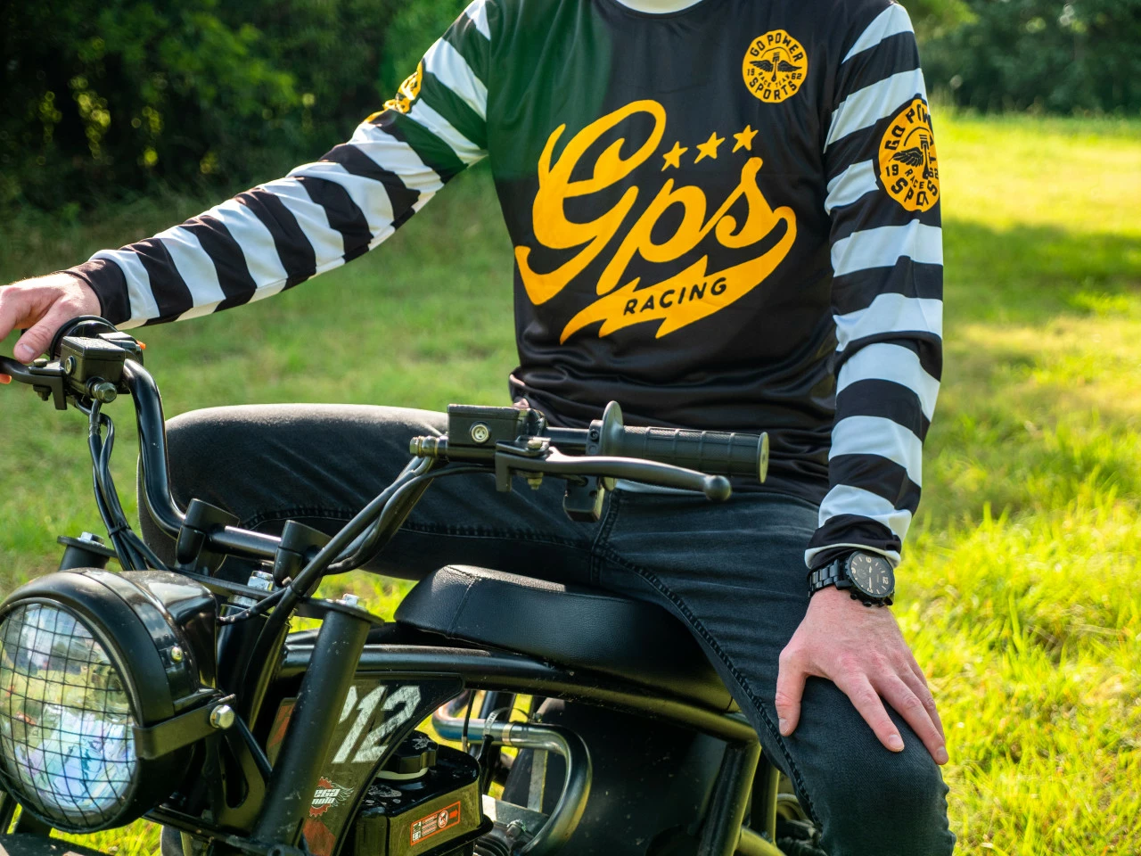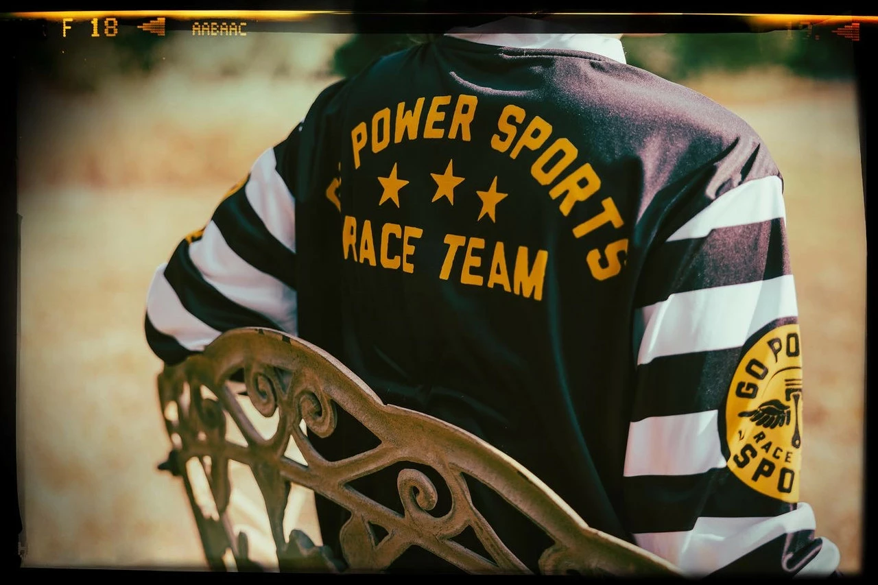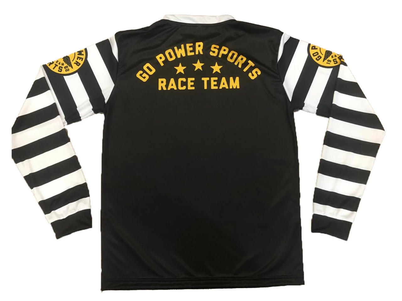 GoPowerSports Striped Race Jersey, paying homage to the good ‘ol days. Slim fitting, jersey material.