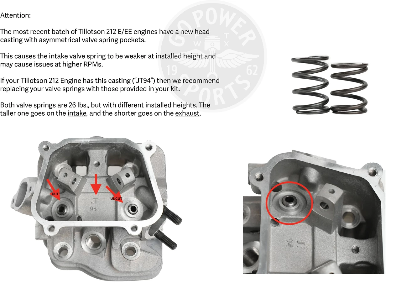 ***If your Tillotson head does not have the JT94 casting you do not need new valve springs for stage 2 or 3 unless they are worn.***