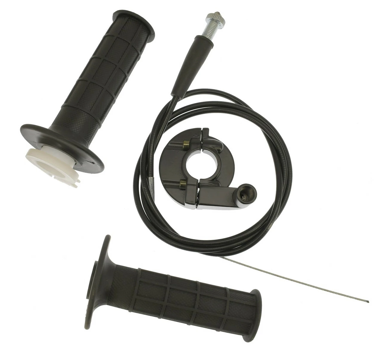 Handlebar throttle twist grip kit that will fit onto any 7/8″ handlebar. This kit is mainly seen on the Mega Moto’s 80 and 105 Mini-Bike but will work on many other units.