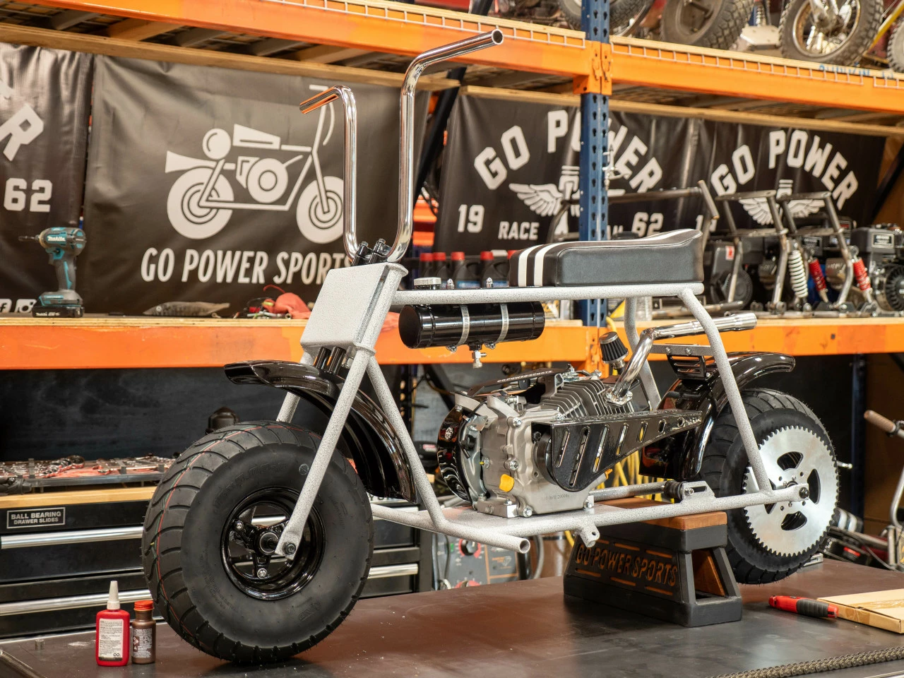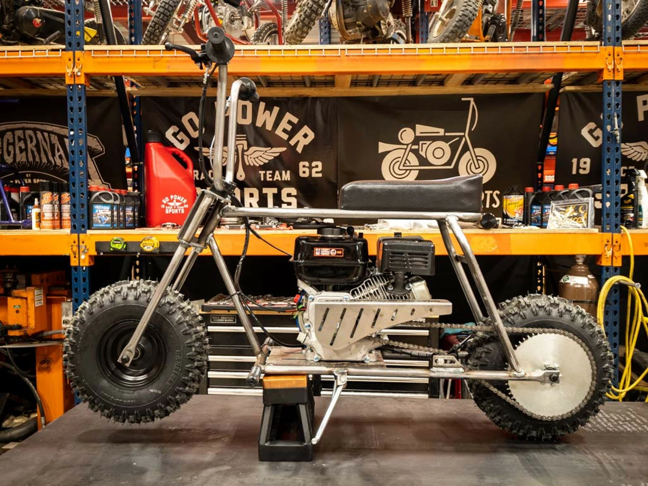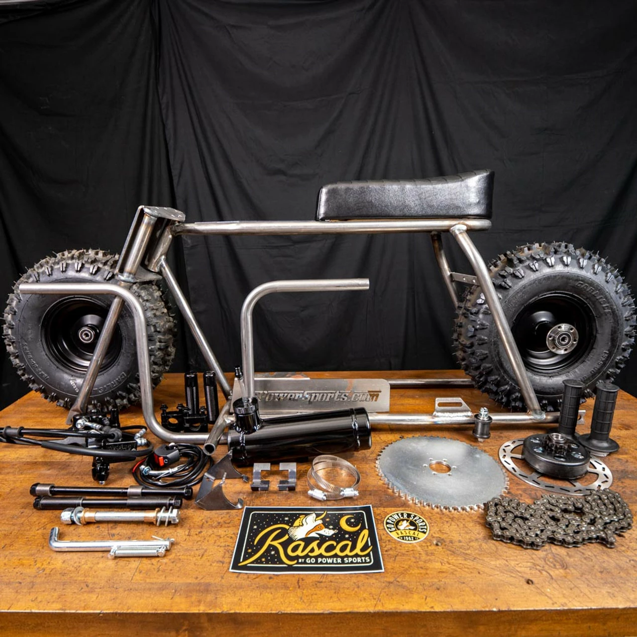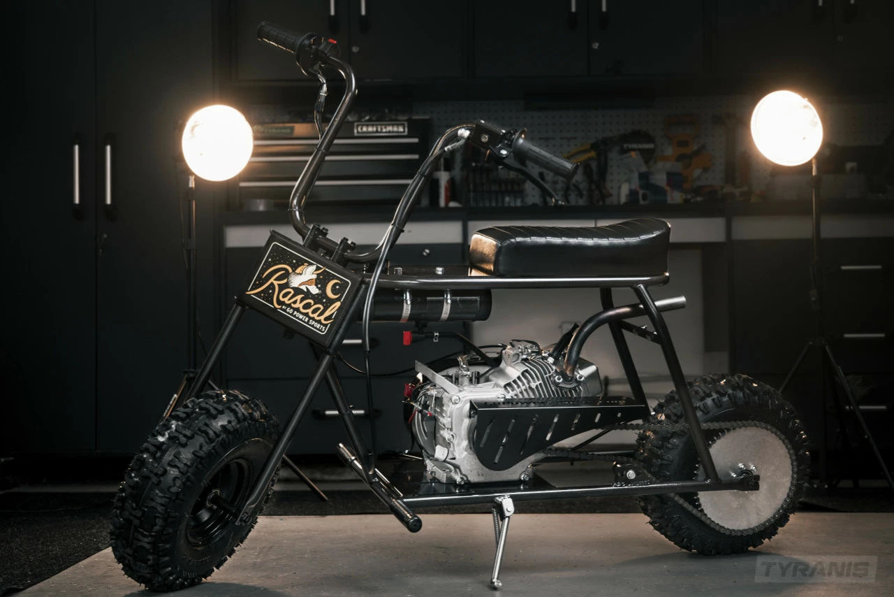 Introducing, the Rascal Minibike Kit by GoPowerSports. The Rascal is the big brother to our Lil Rascal Minibike Kit and is more comparable in size to the Doodlebug Minibikes. This bigger frame size will be comfortable for adults and teenagers, and also allows you to fit a stock 212 Engine without any modifications. (Engine is not included.) The Rascal Minibike Kit comes with everything you need to make a “Roller”. Frame made in the USA.