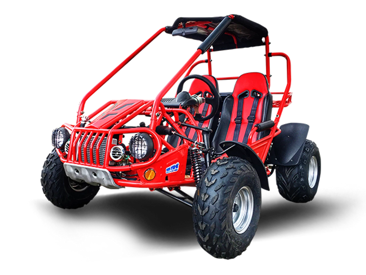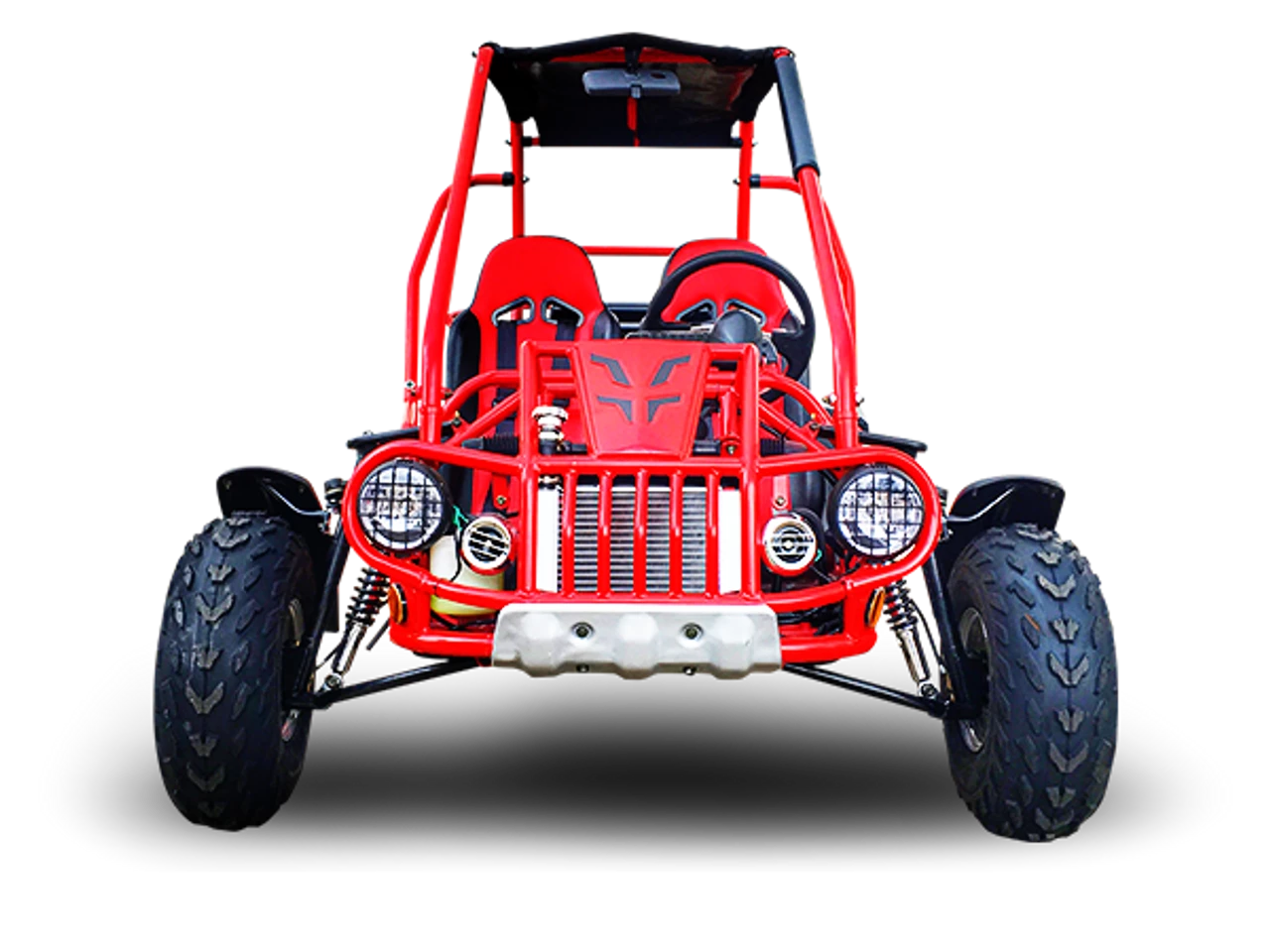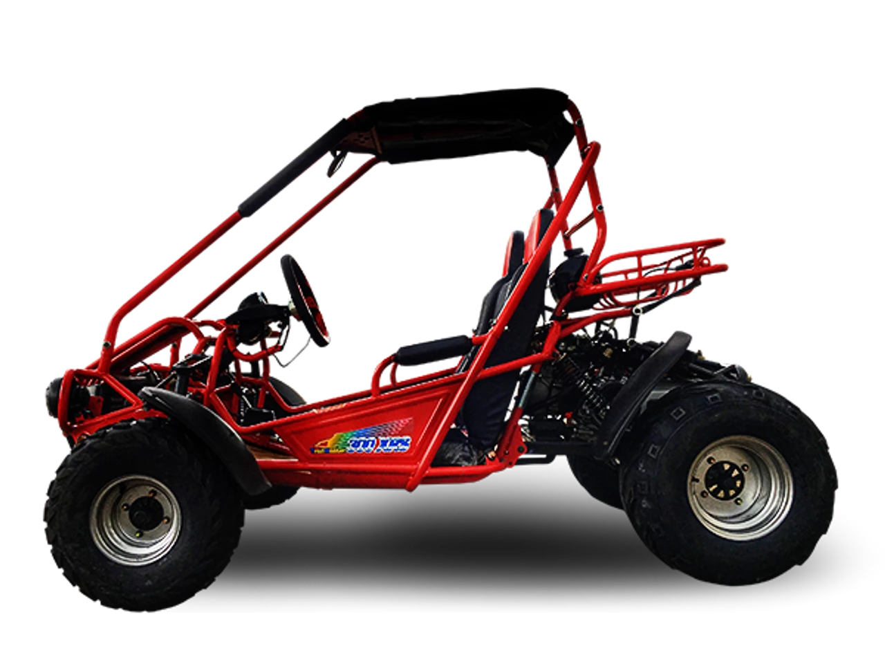 The design of the 200 XRS features cozy bucket seats that will adjust to help the driver maintain a comfortable driving position. Each seat contains a seat belt, which is only one of the amazing safety features this model has. The 150 XRS also boasts durable headlights, tail lights and hydraulic brakes ( front and rear) that will ensure the driver has complete control day or night. Your model will also include a 2.25 gallon fuel tank, electric starting system and dual wheel drive that will ensure your go-kart time won’t just be a whole lot of fun, but will improve your skills while you spend hours out in the fields.