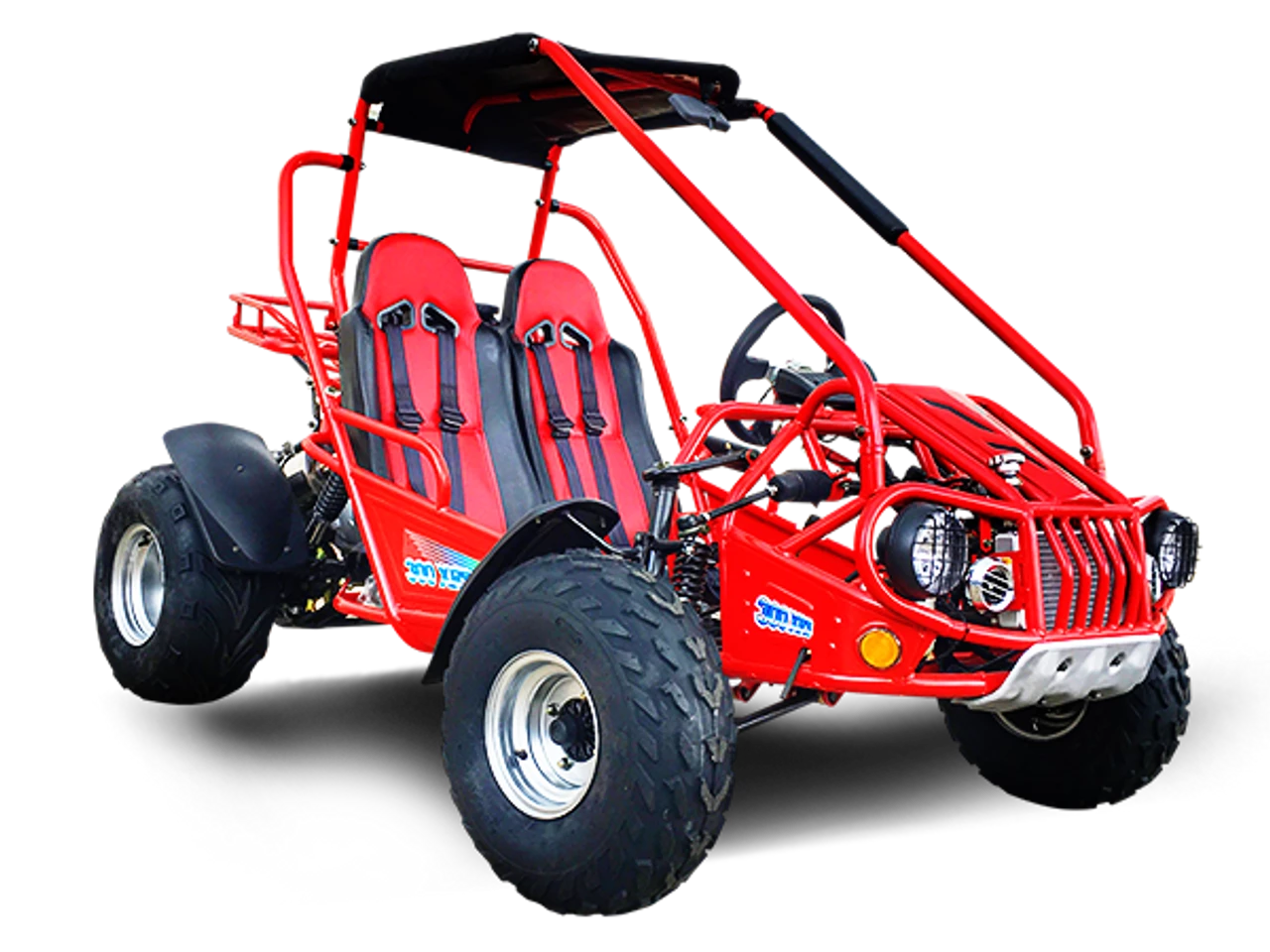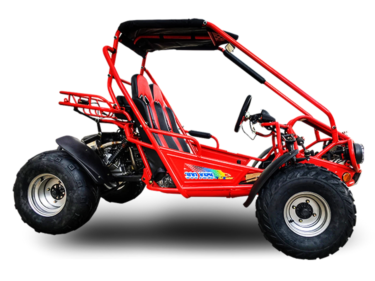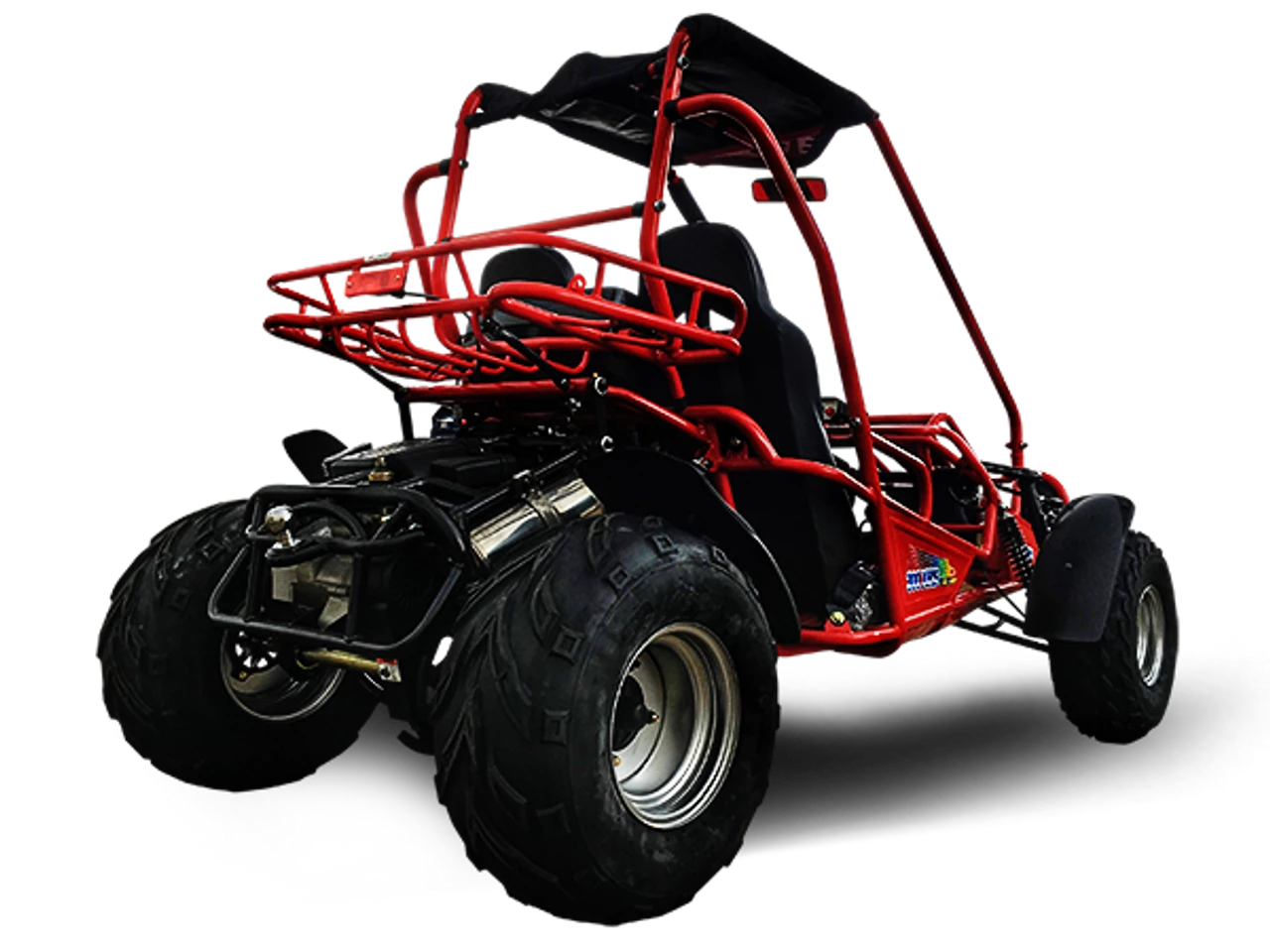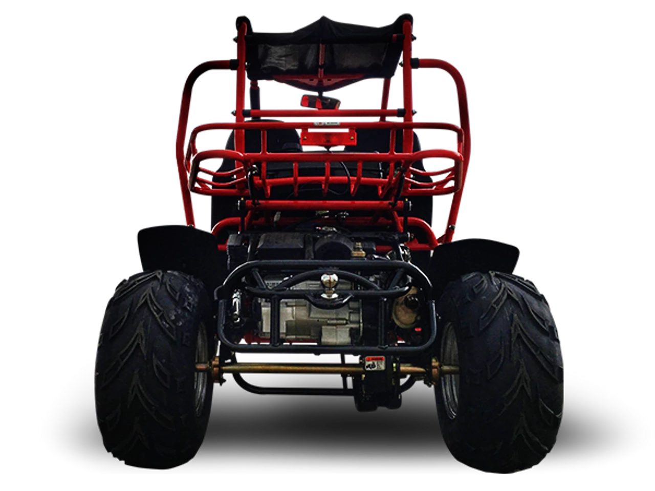 The design of the 200 XRS features cozy bucket seats that will adjust to help the driver maintain a comfortable driving position. Each seat contains a seat belt, which is only one of the amazing safety features this model has. The 150 XRS also boasts durable headlights, tail lights and hydraulic brakes ( front and rear) that will ensure the driver has complete control day or night. Your model will also include a 2.25 gallon fuel tank, electric starting system and dual wheel drive that will ensure your go-kart time won’t just be a whole lot of fun, but will improve your skills while you spend hours out in the fields.