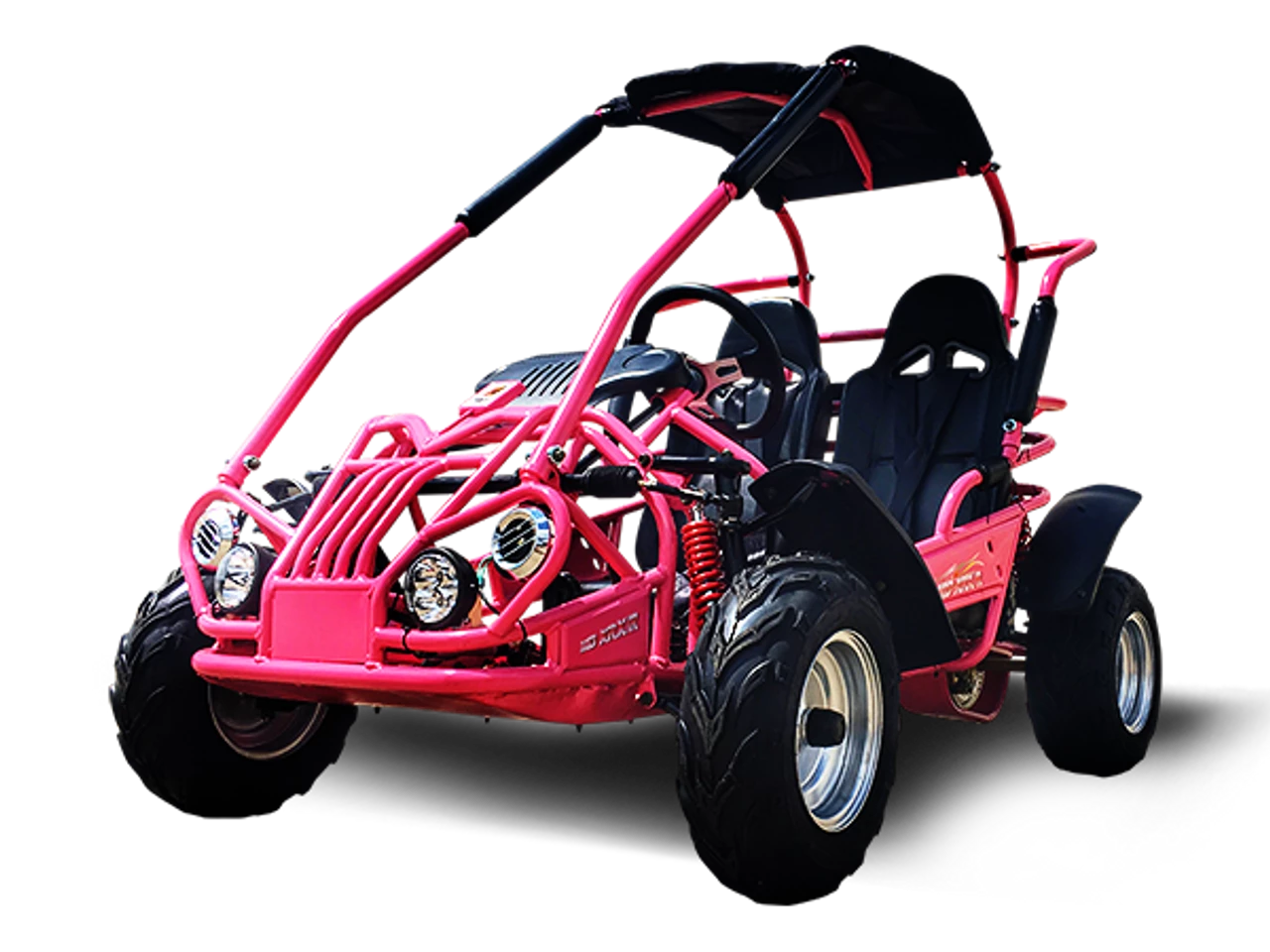 Apart from the incredible safety features, this go-kart has all wheel fenders so your mudding experience might not be as messy. The MID XRXR65 also has so many features that will create a smooth ride for you and a companion. For example, this TrailMaster has large tires, F / R: 16×6-8 / 16×7-8, that will get you through some tough trails with ease. You’ll also feel like you’re sitting in luxury with the individual sporting seats. The driver’s side can even be adjusted to fit most driver’s needs. This amazing go-kart can be pushed up to 40 miles per hour, which is certainly a recipe for the perfect weekend getaway. Of course, one of the best features about this model is the easy drivability, thanks to an electric start, automatic design, gear indicator and easy to power steering wheel.