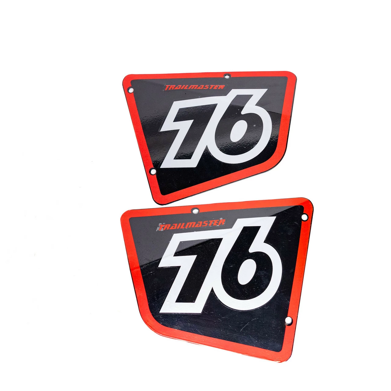 Pair of Dummy Side Plates for the TrailMaster Hurricane 200X Minibikes. These will come stickered, but my have scratches or blemishes.