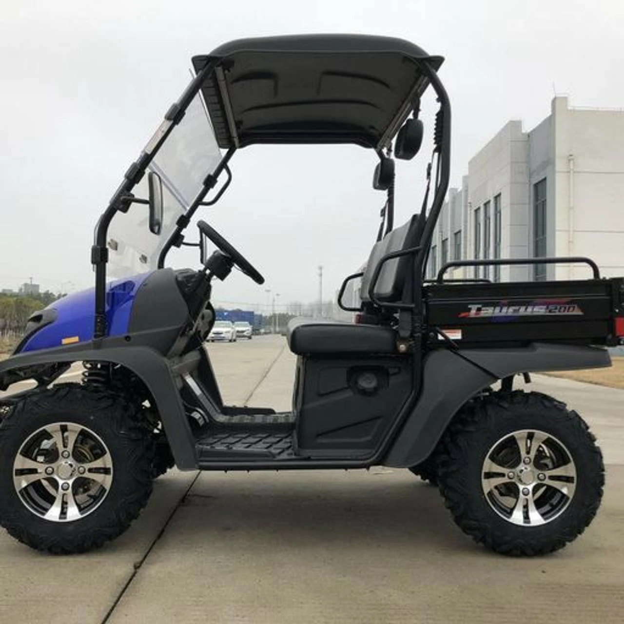 The Taurus 200U utility side by side is equipped with a 9.5 HP air and oil cooled high performance 177cc GY6 engine with internal reverse set up. It comes standard with a H/L gear. The low gear mode has a 40% better climbing ability than the non H/L version and can climb 30 degree slopes with ease. The Taurus 200 has significantly greater torque than the non H/L gear machines and is equipped with 4 wheel independent suspension for optimal driving.