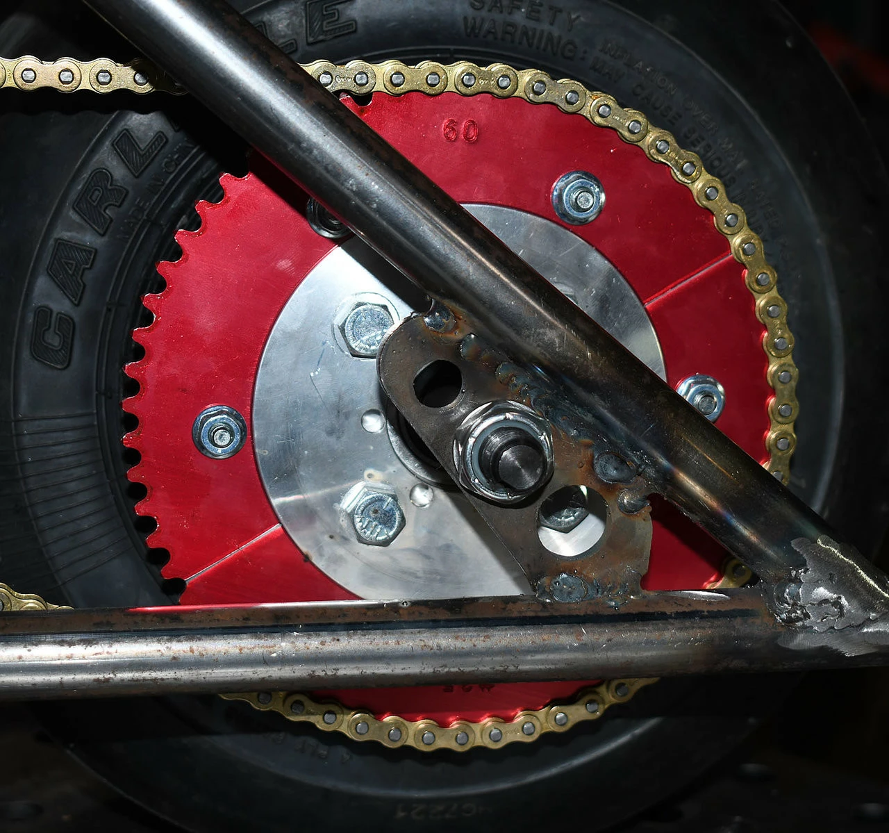 - Outside Hole pattern for sprocket: 5.25″ with 1/4-28 threaded holes